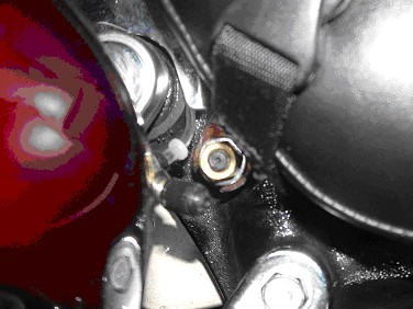 2. Screw a stud into the threaded hole replacing the bolt as shown at