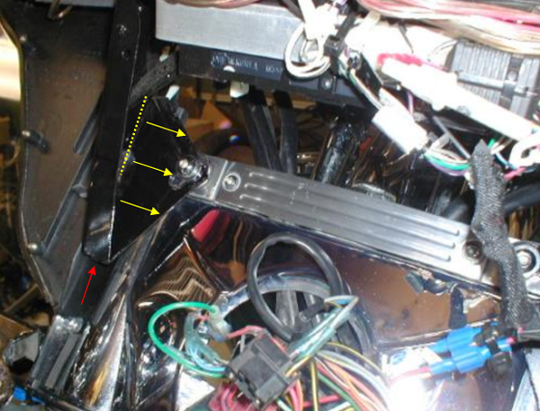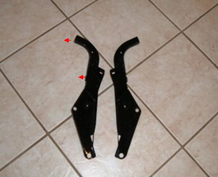 sides. The red arrows show where they will bolt into the top backside of your inner HD fairing. They will need