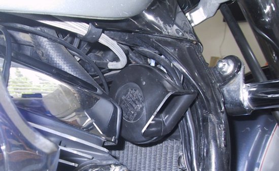 Lucky 1500 owners have a second horn over on the right side of the bike which remains connected in this mod. It gets a little overwhelmed by the air horn tough and, since we used a relay in the horn circuit we still have plenty of capacity for....an upgraded (louder) horn !