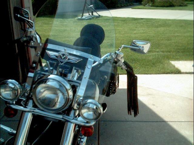 Once your logo is off what do you do with it? Well, if you're proud of your ride you can re-use it! A couple layers of double sided sticky tape to build up the inside surface and it makes a great emblem for the windscreen; the curve on the windscreen just matches the curve of the logo.