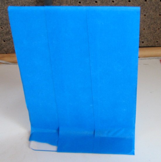 Next step, you have an option or two (probably more so get those creative juices flowing). What I did was cover the plastic sign holder with blue painters masking tape (left) to protect it from scratches while working on it.