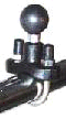 This is probably the simplest solution of them all involving a 1" clamp available at any motorcycle store and a Panavise Deluxe Micro Mount available under $10 at many online stores (do a Google search) and probably under $15 at your local camera store. The Panavise comes in 2, 4, and 6 inch lengths so determine where you'll be mounting and whether you'll need clearance from other accessories before ordering. Generally shorter will be better to reduce vibration.