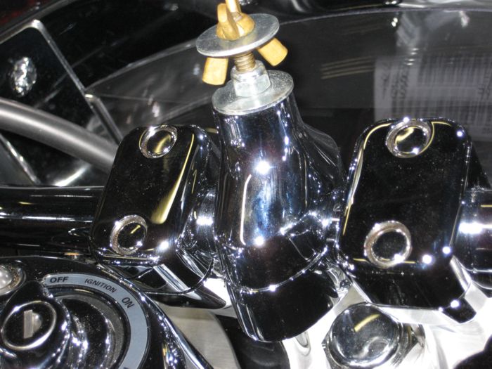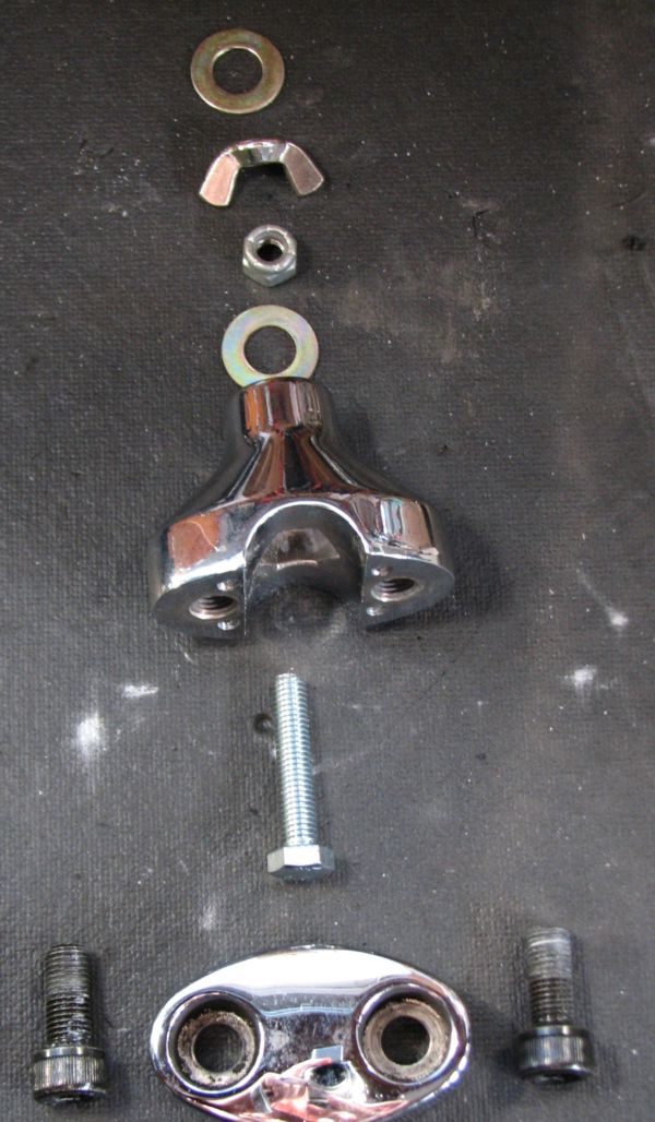 Ron took a look and simply mounted the riser upside down on his bar, added an appropriate size bolt, a couple of washers and a wing nut and voila! A simple, very solid and nearly free camera mount. The exploded view is shown at left.