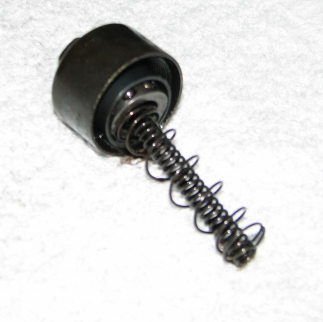 carefully ease the cap away from the tensioner body, so these parts don't go flying all over the place. Take