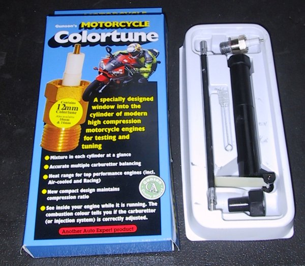 Have you ever thought to yourself....self, it would sure be nice to see inside the combustion chamber when my engine is running. What better way to adjust the mixture ! Well, think and ye shall receive. The "Gunnison Colortune" is a tool that's been around for a very long time, used mostly by sports car owners with multiple carburetors to balance them. Now Gunnison has heard the thoughts of motorcyclists and has produced a product specifically for us.