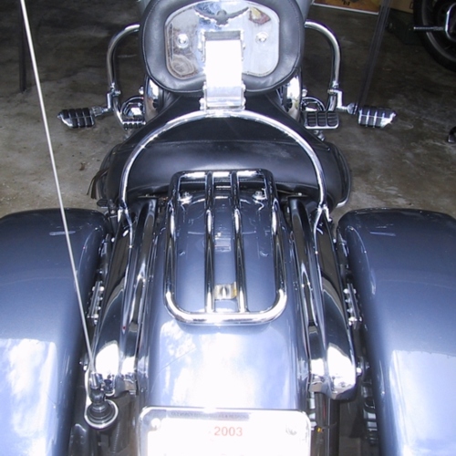 Skip Straight To Photos @ Bottom Of The PageYou ride solo, never carry a passenger so have no need of the pillion pad but a naked fender doesn't do much for your sense of style either. What to do? Well, there is a Kawasaki Fire & Steel fender rack available. It is flat on top and pretty square around the edges. Functional but not very stylish. There are a couple of other companies offering fender racks but they're made from a stamped piece of steel which is curved to fit the fender profile. Closer.