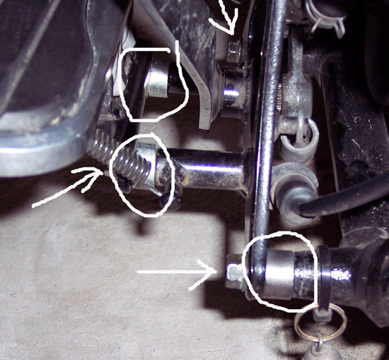 I simply went to the hardware store and got floorboard mount bolts and brake mount bolts 1/2 inch longer and 4 flat washers. The new bolts are not flare head like the stock ones so washers were necessary.