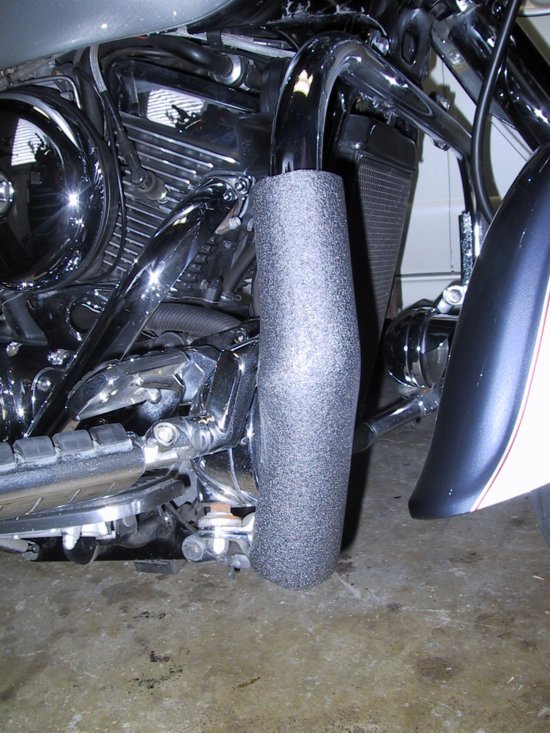Not a problem. It's a little hard to photograph but all you need is a stick (they're sold in 6 foot lengths) of pipe insulation foam. Get the one inch inside diameter stuff. It's close enough to the 1.25" crash bars that you won't have any difficulty.