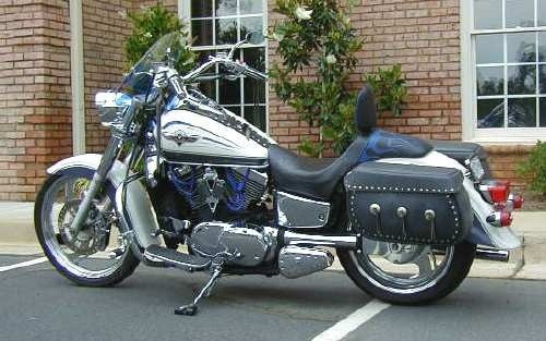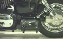 After relocating the rectifier on a Classic it's a fairly simple job to attach a tool bag or box to the stock rectifier bracket to fill the open space. On the right side to cover the open area left by removal of the "Goats Belly" you can make a skirt.