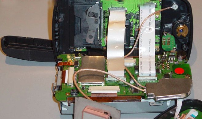 another kind of holder in a car? Make sure wherever you attach the GPS end of the cable doesn't interfere with either mounting solution. In my case it's a Garmin 2610 with no little ears, no easy place to attach the cable so I drilled a 1/16" hole at the very front of the GPS base as shown in the photo (right) and the underside of the mounting plate (left)
