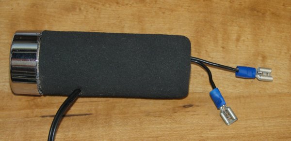 8. Attach wires to the accessory connector. I'd suggest some shrink tubing on the positive connector but you can use electrical tape. You just don't want the positive and negative coming together inside the tube today or ever. Be sure and keep track of which wire is positive, which is negative.