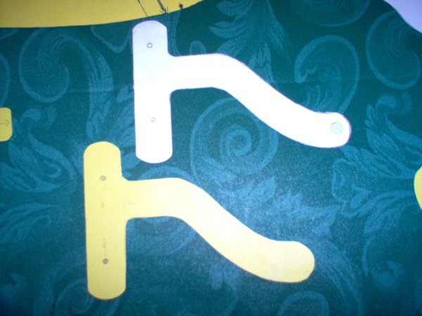 Next to this you see the finished pattern and the finished cut out steel brackets.