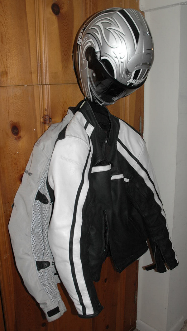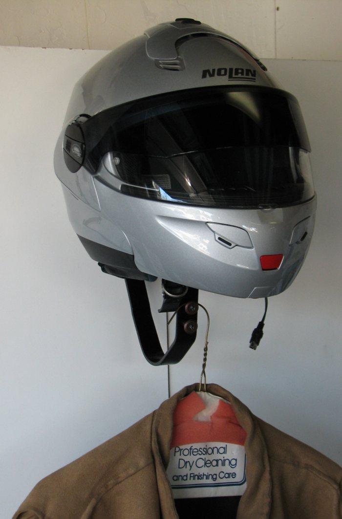 1- Closet pole socket or any kind of smooth disk that will prevent damage to the inside of your helmet