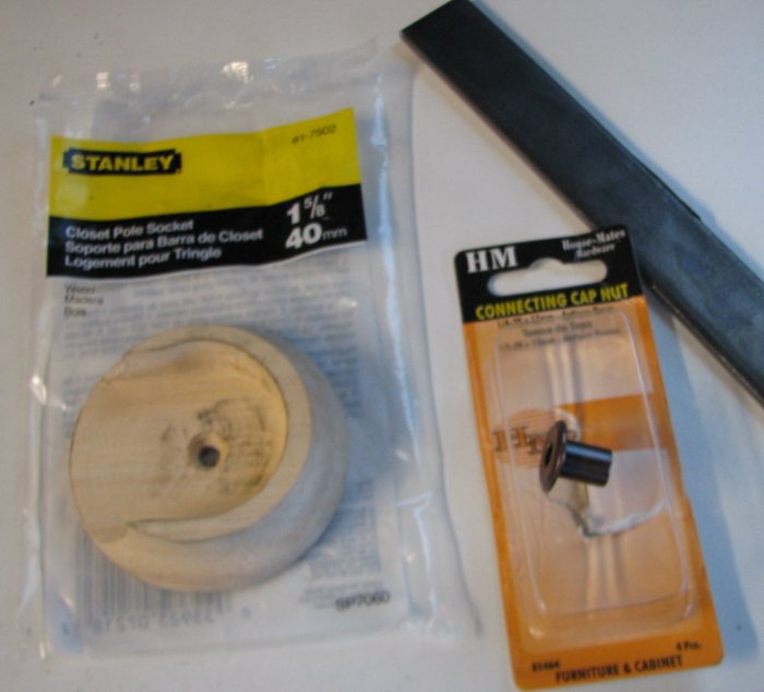 1- Package of connecting cap nuts (see picture). These are threaded for 1/4-20 bolts and will be used to hold a coat hanger.
