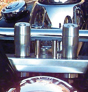Running wires inside your handlebars is pretty time consuming and requires patience. The following instructions detail how to do it. The one thing that makes the way I did it nicer than most is that I covered the only area where the wires would be visible with 1-3/8” chrome valve stem covers available from any auto parts store (see figure 1). Here’s the instructions: