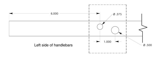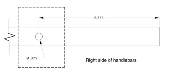 8. For the right side, use the dimensions from figure 5 to mark the handlebars. Use a 3/8” bit to drill the hole. Now that your done drilling, clean up all of the holes with a file or dremel tool so that there aren’t any sharp edges to cut the wires.