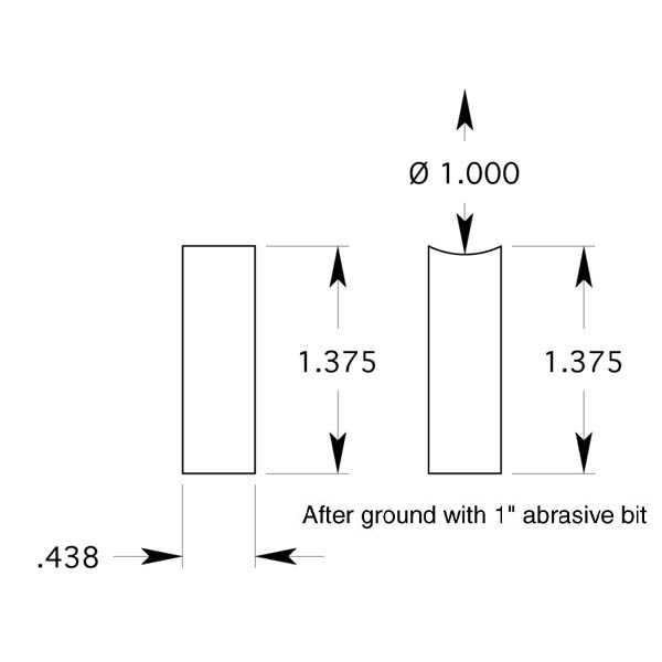 3. To drill the holes through the triple clamp: Using a metal punch, mark a point on the front of the handlebars next to where the riser clamps split. This gives you a point to line the handlebars up and to accurately rotate them 90 degrees. Remove the handlebars. With a metal punch mark 2 points on your triple clamp using the dimensions from figure 2. Drill a small 1/16” hole to start with. This way you give the bigger drills a better hole to center on, as well as can make any small changes before you commit to drilling the final hole. I used 2 drill bits, a 13/32” for the hole and a 7/16”. Start with the 7/16” bit first and drill till you have a wall about 1/16” high. Finish the hole with the 13/32” bit. This gives you a lip for the chrome covers to sit in (see figure 3 for sort of cross sectional view.)