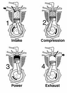 4) Exhaust - piston goes up blowing out burned gas.