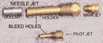 Most 4-strokes have pin holes along the length of this brass jet. These pin holes allow air from the air jet to
