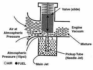 the vacuum to both the top diaphragm chamber and needle jet. As the vacuum in the top chamber causes