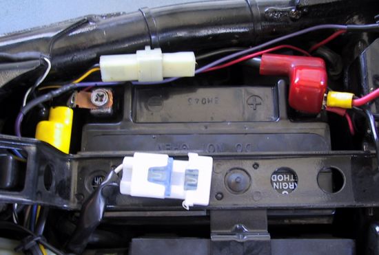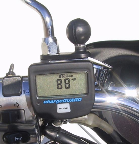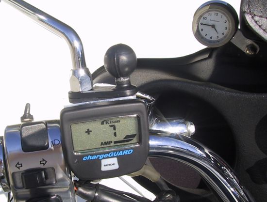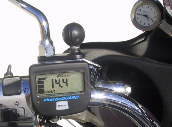 Note, not shown on this page is the "Charge X" battery charger also available from Kisan. The Charge X, when purchased with the "Charge Guard" uses the same battery connections and can be mounted virtually anyplace on the bike. The size is roughly the same as a pack of gum. The Charge X works much the same way some other high quality chargers do, charging the battery fully then maintaining a full charge at all times without any danger of over charging the battery. This unit would be absolutely perfect for bikes that get parked during the winter or see weeks go by between uses.