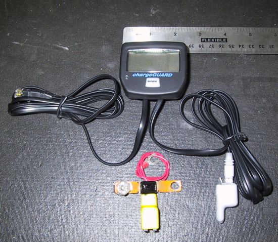 If you use scissors or a knife to cut a slot in the positive side terminal cover it will be simpler to cover the terminal and accommodate accessory wiring. The picture above/left shows the red wire from the ChargeGuard along with another accessory wire I have installed on the Nomad for a trailer and heated vest, both good reasons to monitor the charging system closely.