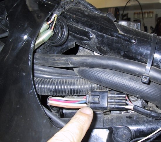 bolt. Trace the wire up to the left side of the frame where you'll find a six pin plug. (see