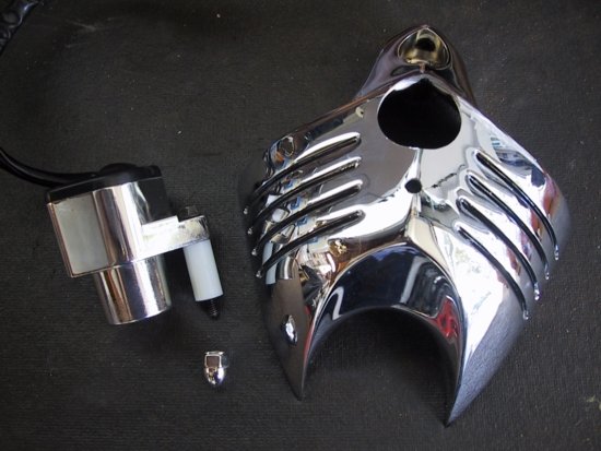 This is what the part looks like out of the box. A very nice piece. The slots on the left and right go all the way through. It's supposed to be a horn cover after all. Obviously this can only be done after you've removed the stock air cleaner and mounted an aftermarket air cleaner on the right side of your Vulcan.