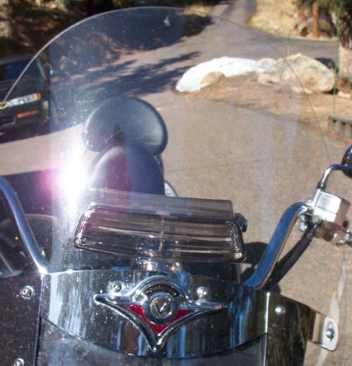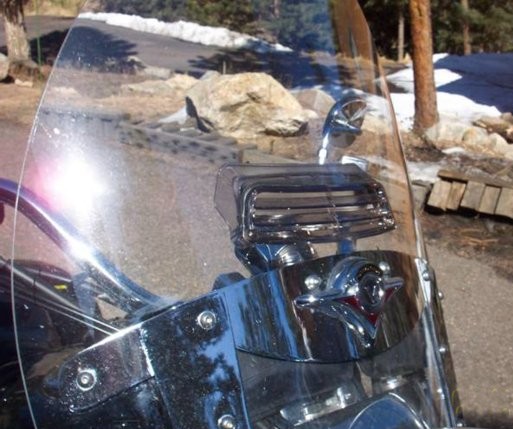 Almost every rider who sits behind a windshield enjoys the wind and bug protection it affords but on those toasty days, whew! It can get pretty warm with the lack of airflow. The solution? Do what Goldwing riders do and put a vent in the windshield.