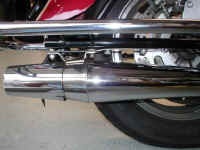 If you are currently running V&Hs Bagger Duals or other aftermarket exhaust on your Nomad you have options for your mufflers. Any exhaust system that consists of 1 3/4" head pipes allows you to easily do this mod to adapt most any aftermarket mufflers as long as they are 1 3/4" I.D. at the front connection.
