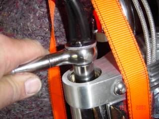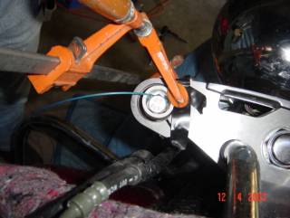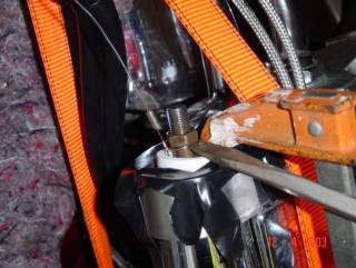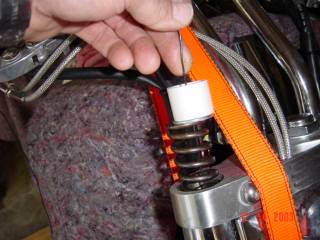rod just below the 14 mm locking nut. Wind up the wire and loosely stuff it in the top of the fork tubes.