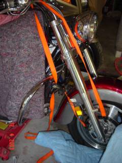tie down, this will compress the front end, compress it till it is close to bottoming out make sure the spring