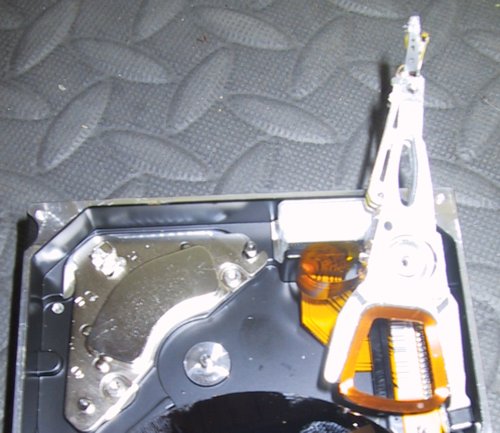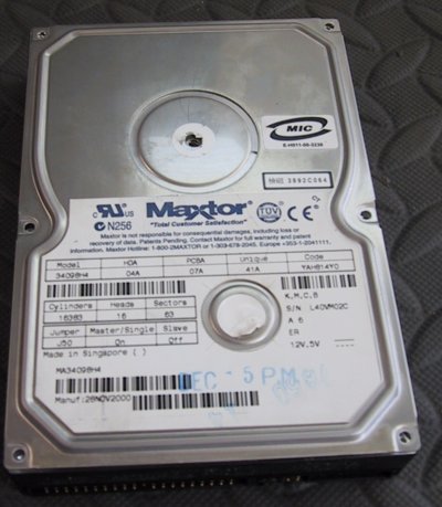 'persuasion' the magnet will come off. Now scratch and bend the drive disks up a little to make them completely useless (some people take a torch to them) and toss the drive.