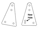2. The second no cost option was developed by Dan Champagne and involves drilling a simple hole in the existing bracketDan's explanation: I simply drilled a new hole on the bottom leading edge of the bracket just above the factory hole. The only thing you want to be sure of is the new hole should be a completely separate hole for strength, not a slot from the factory hole (slots could slip). The old factory holes are located below so they are a little more hidden. This will in effect 'tilt' the entire assembly forward. You will lose (very) little space on the passenger seat as the whole assembly is slightly forward.