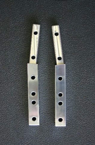 Above is a product machined and, at one time, sold by Dennis (Rainman) Haugen. The backrest extender is machined from aircraft grade aluminum. The part fits inside your existing backrest and attaches to the existing brackets you need only supply two additional bolts to attach the backrest to the extensions. Unfortunately Dennis' e-mail address has changed and I don't have any contact information for him so can only suggest you might want to create your own bracket based on the plan below. Note the additional mounting holes in the bottom portion of the bracket. Dennis drills two sets of holes where the pad mounts giving your pillion a choice of heights 3.5 or 5.5 inches higher than stock.