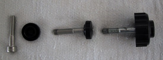 All you do is, using a vise, press the appropriate shoulder bolt into the thumbscrew, remove the stock 10 mm bolts and replace with your new creation. Piece o' cake!