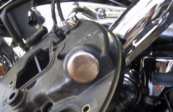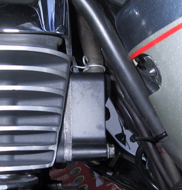 A bit of background. Reed valves are mounted on the right front of the #1 (front) cylinder and left rear of the #2 cylinder. Their purpose is to inject air into the exhaust stream immediately after the exhaust valve which causes any hydrocarbons that escaped the explosion in the combustion chamber to burn. This typically creates a popping from the exhaust when the throttle is closed and the bike is decelerating. Most riders can't even hear the explosions with stock exhaust but with aftermarket pipes the constant popping can get rather annoying.