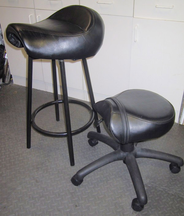 There is so much you can do with them! Ok, you 'might' be able to get a couple of bucks on E-bay but this is so much more fun.Above is a Nomad drivers seat mounted on an old barstool found at a Salvation Army store for a couple of bucks. The original chair type seat was removed and the motorcycle seat bolted to the swivel mechanism. I used four spacers so the bottom rear of the seat would clear the legs when swiveling. The legs were shortened 3" to make up for the additional height of the motorcycle seat. Perfect for workbench use.