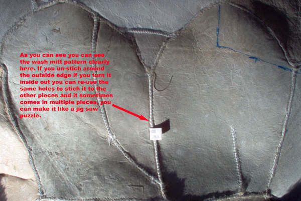 First we bought a few wash mitts at our local Wal-Mart (I feel so American saying that <G>) and found a few that were of the same plushness and same shape and about the same color. We then turned them inside out and used my wife's ripper tool to remove the threads around the edge of the mitts. taking off the elastic band first (an xacto knife or razor blade will do the trick).