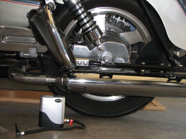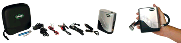 Size matters, we all know that especially when it comes to things we'd consider carrying on a motorcycle. The smaller and lighter the better. So it is with the Slime Power Sport Inflator. This product was named "Innovation of the Month" by Motorcycle Consumer News in the August 2006 issue. It just might be one of the smallest air compressors you've ever seen that was practical for filling a motorcycle tire. I picked one up for just under $30 from a local Cycle Gear store. You can also purchase them online from that store or from Amazon.com.