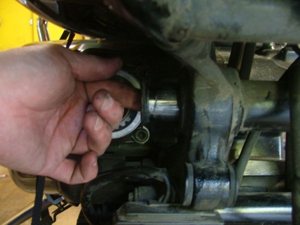 nuts from the swing arm to final drive you will notice the gear case moves towards the rear of the bike.