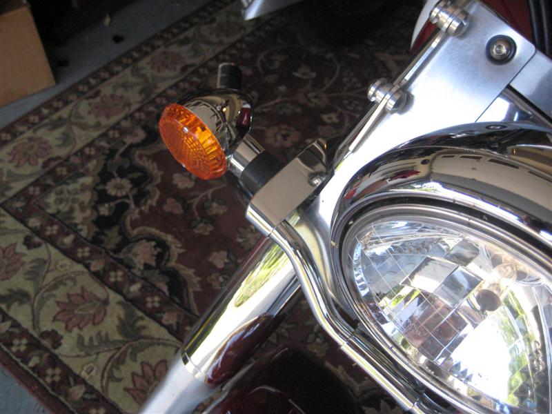 I righted the bike, aimed them at the garage door and aligned them and tightened everything down. Overall, it took me about 2 hours....(I had never removed a gas tank before)....but I love the look now ! and have the pleasure of knowing I made it myself !