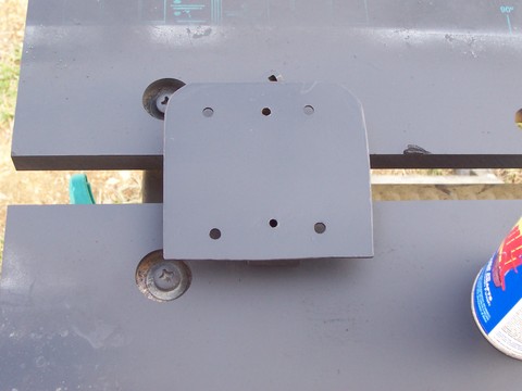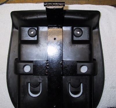 I have painted the bottom portion (triangular) to match the fender but left the vertical portion in primer for the photos. Once painted black it blends right into the seat and visually vanishes. The triangular portion measurement is dictated by the three bolts that normally hold the pillion pad and front of the pillion pad bracket in place on the fender. The upright portion is 4" in height from the triangle. I simply used the bracket that comes with the Utopia backrest for additional height and fore/aft adjustment.