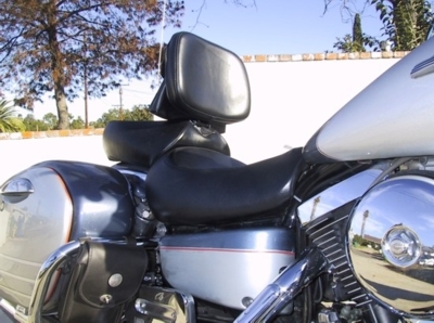 So, you just got off the bike after a couple of hundred miles and discovered....Oh your aching back. Did you know back pain is disabling to 5.4 million Americans and affects a whole lot more of us to a lesser extent? In many cases the cause is simply poor posture which is precisely what most of us have while riding a motorcycle. We lean forward to reach the bars, our feet are not always in the most comfortable of positions and after awhile the stress goes straight to the spine. Well, there are solutions. Many of them are aftermarket and we'll touch on a few of them here but we'll also show you how simple it is to make your own.Backrest #1