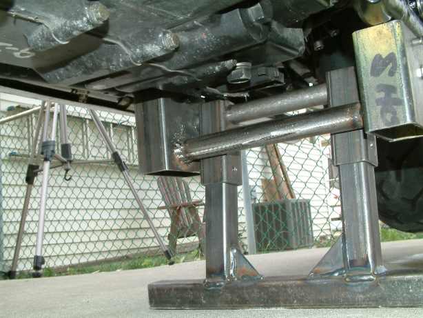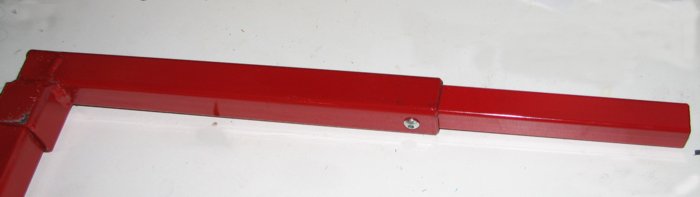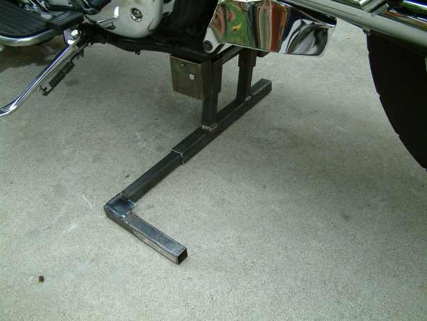 4. If you're weight challenged and find lifting the bike on the tall stand difficult, add an extension as shown at right. A piece of 3/4" square steel tube will fit right into the larger tubing used for the stand and will give you substantially more leverage. A set screw will keep the extension from sliding out. The extension shown is 5.5" which allows for clearance with the Nomad dresser bars.