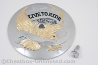 Before we get to the 'how to' let me mention you have tons of options depending on your taste. If you'll check E-Bay searching for "Air Cleaner Insert" or "Derby Cover" or "Horn Cover" you're going to discover a world of choices. Below are just a few posted on E-Bay as this was being written. Pricing varies a bunch so wait for the bargains unless you see a part you've 'just gotta have'.