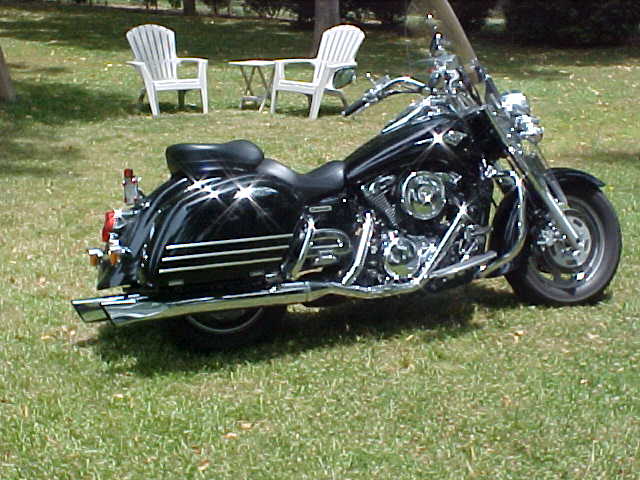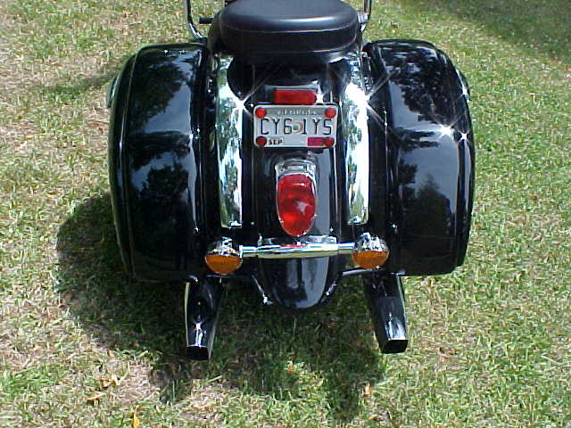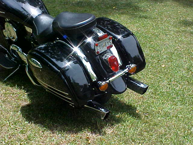 Vernon calls this "fallin' off the log easy". The project will give you a 5.5 inch extension from under the bags as you can see in the photos along with what he calls a "Harleyesque tone to the stock pipes...rumbling at low reves and barking at high".
