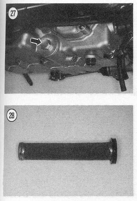 To find the plug which holds the screen in (part #11012) look on the left side of your crankcase, roughly midway between the kickstand and the oil drain plug on the bottom. On the 'side' of the crankcase is a 17mm plug. This can be removed with the bike on its kickstand or on a lift (easier) or by using the leveling method detailed on another page. Remove the plug, (check for damage to the gasket and replace if necessary) remove the spring, remove the washer (part # 92022) and carefully slide the screen out of the opening noting its orientation. The neoprene washer (part # 92071) will probably stay attached to the screen. Don't lose it. Clean the screen with solvent if you have it, (degreaser if you don't) . When all the oil has drained from the engine and the screen is completely dry, re-assemble in the reverse order.