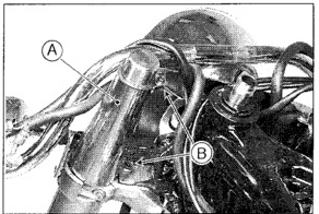 With the top clamp gone "B" marks the bolts you have to remove to get the fork top