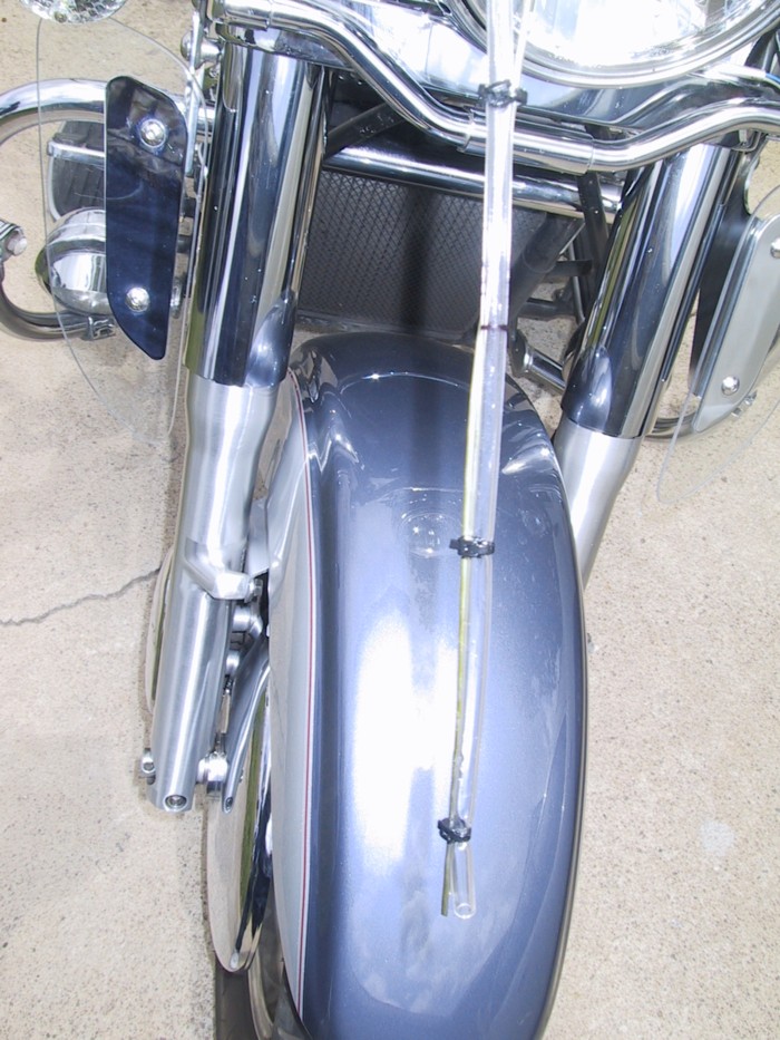 3. Remove front fender. Four bolts hold the fender in place along with fittings for the front reflectors and brake hose supports. When the bolts are removed use utility wire or string to tie the calipers up to engine protector bars or anything that will support the weight of the calipers. You don't want them swinging from the hoses. Set front fender aside in a safe spot.